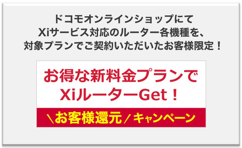 | NTTドコモが「お得な新料金プランでXiルーターGet!お客様還元キャンペーン」を開始! |