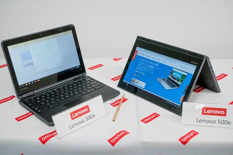 既報通り、レノボ・ジャパンは3月13日、都内にて「Chromebookおよび教育市場向け戦略発表会」を開催し、Googleが開発するパソコン(PC)向けプラットフォーム「Chrome OS」を搭載した普通教室向けICT端末「Lenovo 300e」(以下、300e)と「Lenovo 500e」(以下、500e)を発表し、同社の教育市場に向けた取り組みや現在の市場動向についてのプレゼンを行いました。