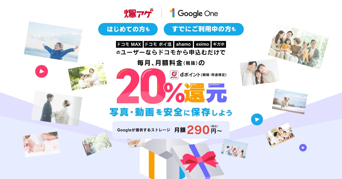 | NTTドコモからGoogle Oneを契約可能に!爆アゲ セレクションの対象に |