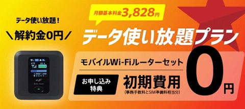 また改定を記念してモバイルルーター「FS030W」とセットで申し込んだ場合に初期費用3,740円分(登録事務手数料3,300円+SIMカード準備料440円)を割り引く「リニューアル記念特典」を実施するということです。