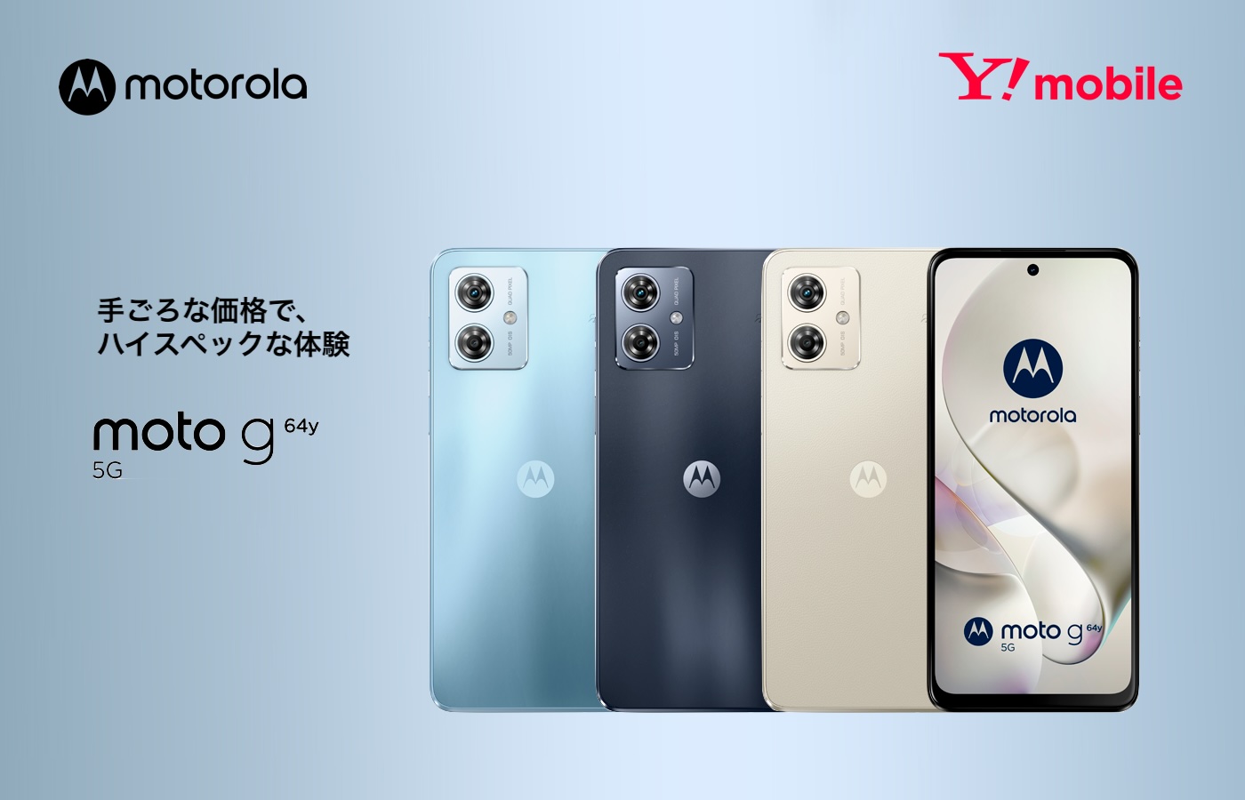 なお、モトローラではmoto g64y 5Gのベースモデルとなる「moto g64 5G」を日本のオープン市場向けメーカー版(いわゆる「SIMフリーモデル」)として発売することを発表しており、両製品ともにおサイフケータイに対応していますが、違いとしては内蔵メモリー(RAM)がmoto g64 5Gでは8GB RAMであるのに対し、moto g64y 5Gは4GB RAMとなっており、本体色もmoto g64 5Gはスペースブラック、シルバーブルーの2色展開ですが、moto g64y 5Gはこれらの2色に加えてY!mobile限定のバニラクリームがラインナップされています。