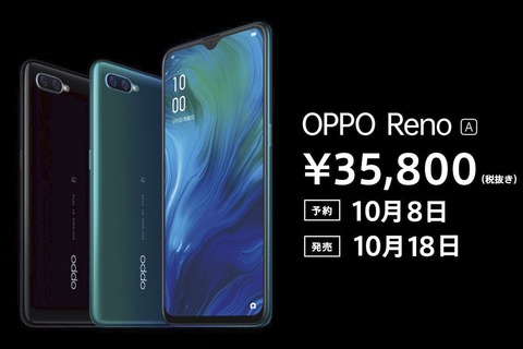 またソフトバンクおよびウィルコム沖縄では携帯電話サービス「Y!mobile」向けに「OPPO Reno3 A(型番:A002OP)」(OPPO Mobile Telecommunications製)を8月下旬以降に発売します。価格は現時点では未定で、ワイモバイルショップや量販店などのY!mobile取扱店および公式Webストア「