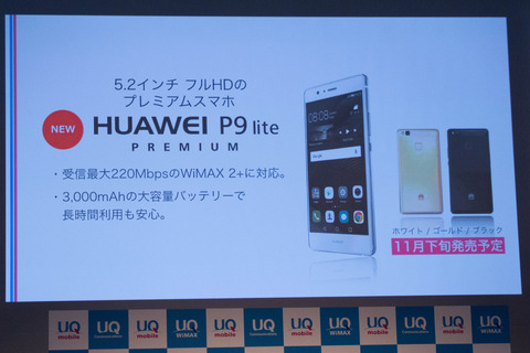 | UQ mobileからSIMフリースマホ「HUAWEI P9 lite PREMIUM」が11月25日に発売! |