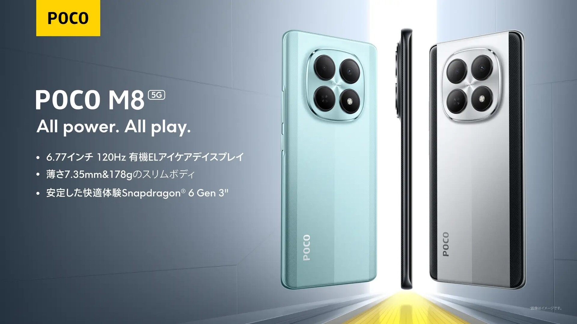 既報通り、Xiaomiの日本法人である小米技術日本(以下、シャオミ・ジャパン)がそんなPOCOブランドの新商品として5G対応ミッドレンジスマートフォン(スマホ)「POCO M8 5G(型番:25118PC98G)」(Xiaomi Communications製)を日本市場にて2026年1月8日(木)18時に販売開始しました。販路は公式Webサイト( https://mi.com/jp/ )内の公式Webストアや直営店「Xiaomi Store」のほか、Xiaomi公式 楽天市場店やAmazon.co.jpなどのECサイトで、価格(金額はすべて税込)はオープンながら市場想定価格および公式Webストアなどでは36,980円です。