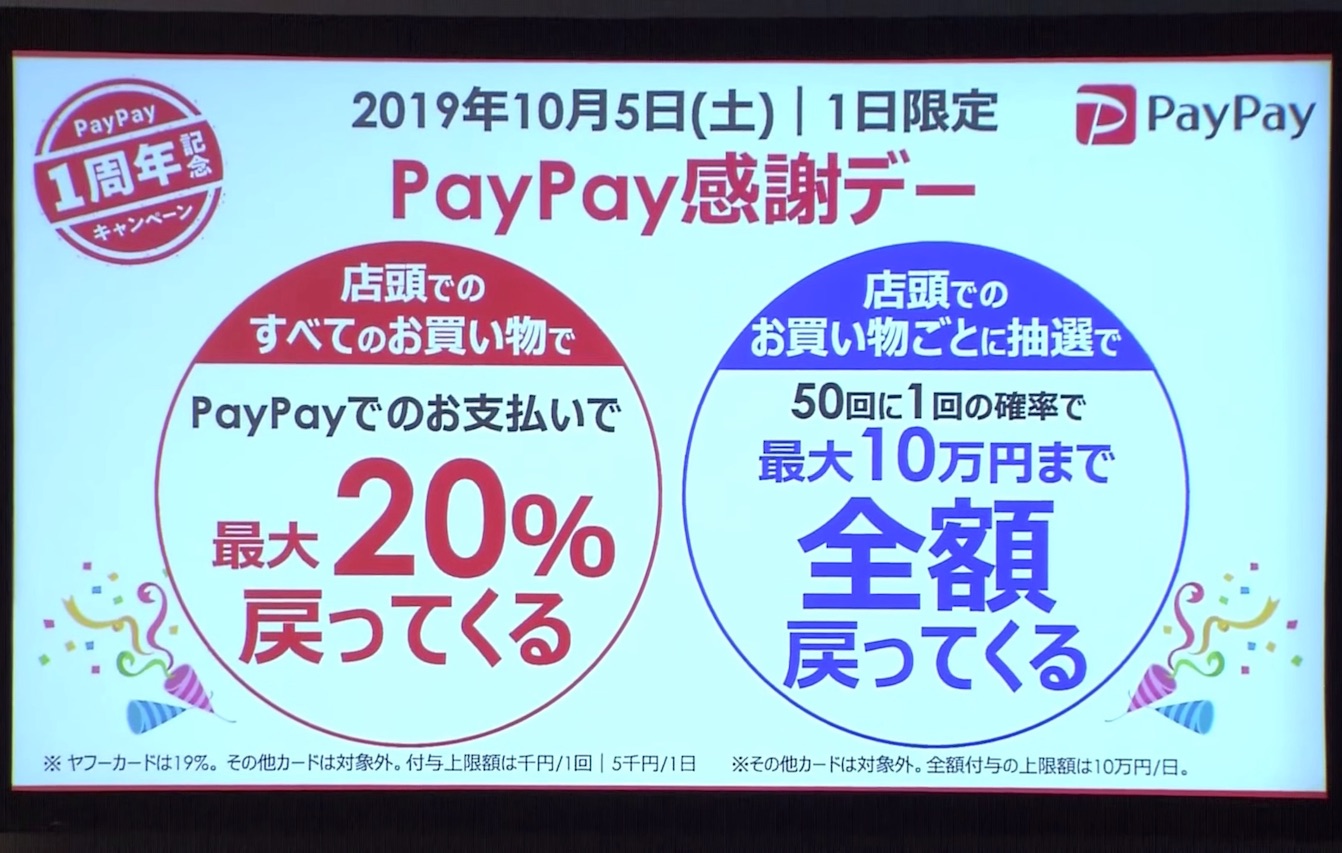ソフトバンクグループおよびソフトバンク、ヤフー(以下、Yahoo! JAPAN)の共同出資会社であるPayPayが提供するスマートフォン(スマホ)など向け決済サービス「PayPay」においてお店で利用したときに付与される通常の「PayPay利用特典」を2020年4月1日(水)8:00から変更するとお知らせしています。