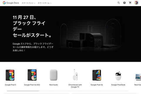 グーグル(以下、Google Japan)は20日、同社が運営する日本向けGoogle公式Webショップ「Google ストア」( https://store.google.com )にて日本時間(JST)の2020年11月27日(日)0:00から11月30日(月)23:59まで「ブラック フライデー セール」を実施するとお知らせしています。