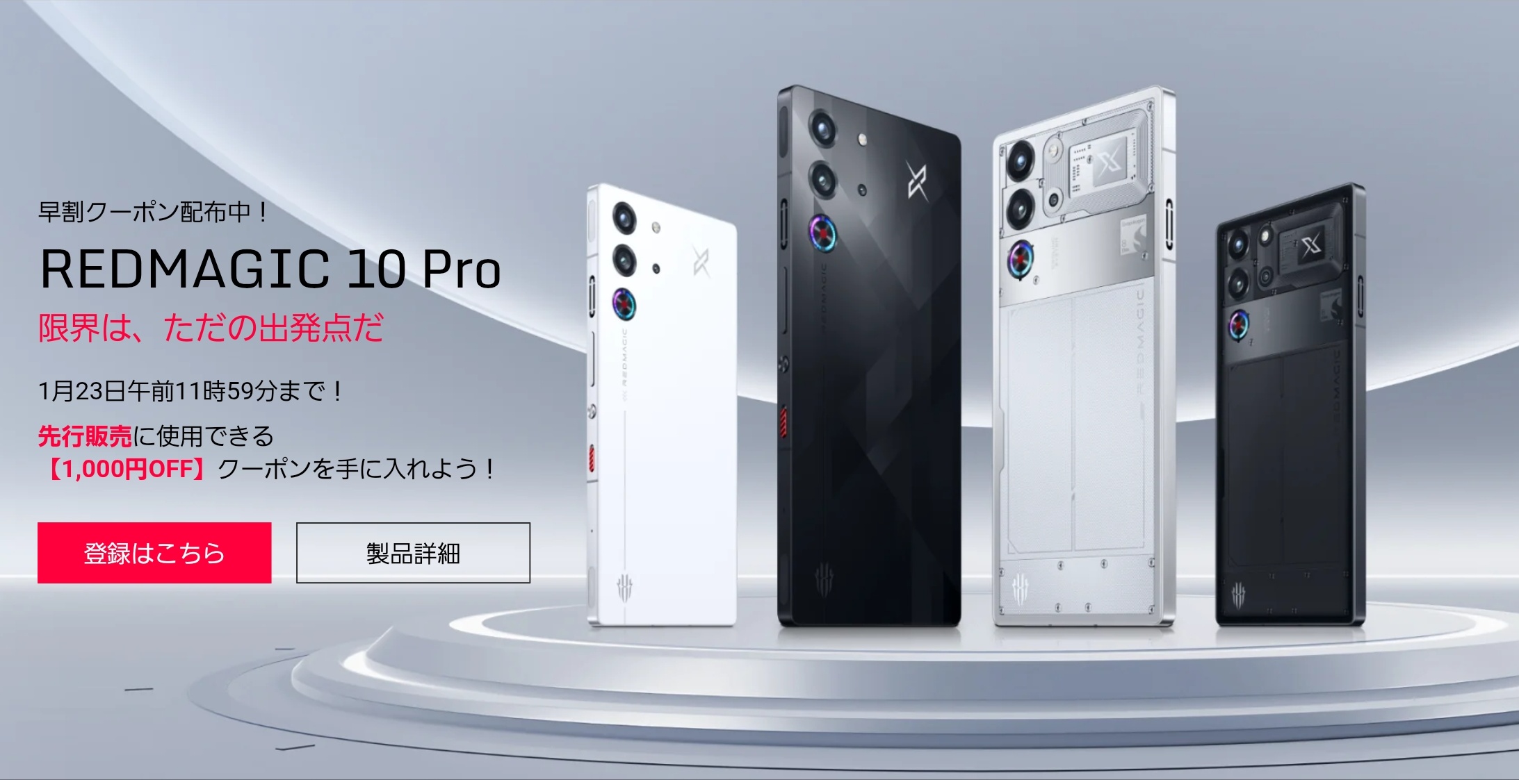 また先⾏販売期間中は先行割引として各モデルともに4,000円が割り引かれるほか、先行販売開始前の1月23日11:59までに公式Webサイトにメール登録した人を対象にもれなく先行割引と併用可能の1,000円クーポンが配布され、各モデルともに最大5,000円が割り引かれ、12GB RAM+256GBストレージのShadowおよびLightspeedが117,800円、16GB RAM+512GBストレージのMoonlightおよびDuskが147,800円、16GB RAM+512GBストレージのDuskが184,800円となるということです。