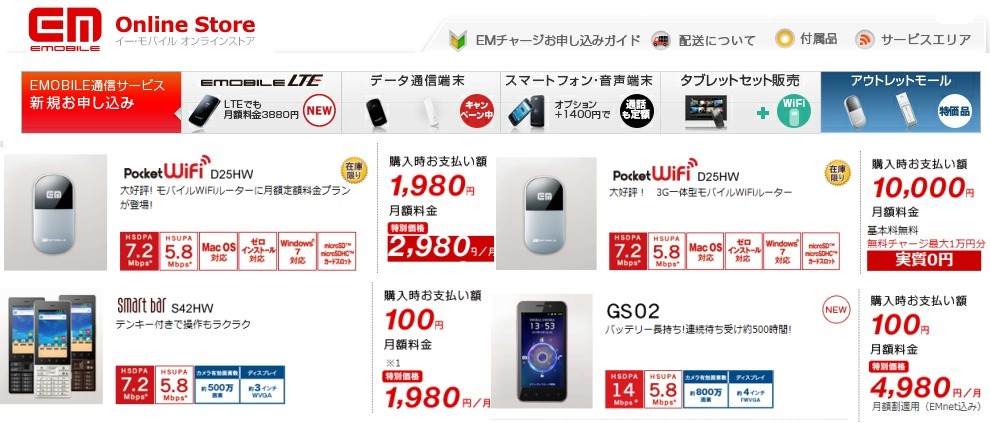 そこで、今回は、このイー・モバイルアウトレットモールにおけるお得商品のお買い得度を検証しつつ、紹介する。