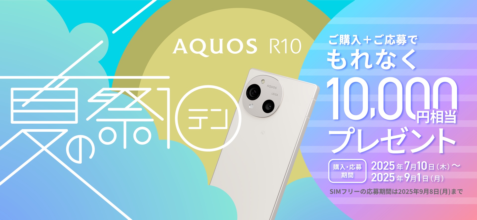その他、発売を記念してシャープがキャンペーン『SIMフリー AQUOS R10 夏の祭テン 10,000円キャッシュバック』( https://k-tai.sharp.co.jp/campaign/r10cp/simfree/ )を実施し、2025年9月1日(月)までにAQUOS R10 SH-M31を購入し、2025年9月8日(月)までにキャンペーンWebページ内の「キャンペーンに応募する」より必要事項を入力して申し込むと、もれなくdポイントで10,000円がキャッシュバックされます。なお、応募にはCOCORO IDでのログインが必要で、応募から最短即日~1週間を目安でSMSにてキャッシュバックの案内を行うということです。
