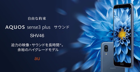 KDDIおよび沖縄セルラー電話は10日、今秋冬に発売する携帯電話サービス「au」向け「2019年秋冬モデル」としてスマートフォン(スマホ)「AQUOS sense3 plus サウンド(型番:SHV46)」(シャープ製)を発表しています。