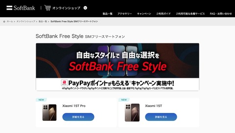 また提供開始を記念して「SoftBank Free Style 購入特典 PayPayキャンペーン」(