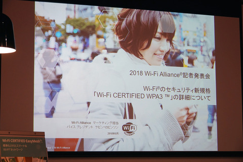 Wi-Fi Allianceは6月28日、都内にてWi-Fi技術のセキュリティー新規格「WPA3」の記者発表会を開催しました。世界に広く普及している無線規格であるWi-Fiではこれまで10年以上にわたりセキュリティー規格として「WPA2」が採用されてきましたが、WPA3はその後継規格となります。
