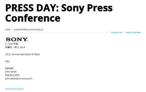 SONY(ソニー)が米国にて2014年1月6日(月)にプレス発表会を開催することがわかりました。翌日1月7日(火)から10日(金)まで米ラスベガスで開催される世界最大の家電見本市「2014 International CES(CES 2014)」の公式サイトにそのように記載されています。