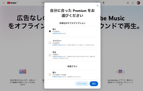 これにより、日本においてYouTube Premium Liteが今後数週間以内に利用可能になる予定です。YouTube Premium LiteはYouTube MusicとYouTube Premiumの登録者数が全世界で1億2500万人を突破したことを受けて誕生したとのこと。なお、従来の「YouTube Premium」の個人プランはこれまでは月額1,280円(年額12,800円)、学生プランは月額780円、ファミリープランは月額2,280円です。