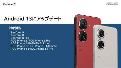 | エイスースがZenfone 9やZenfone8、Zenfone 8 FlipにAndroid 13を提供開始! |