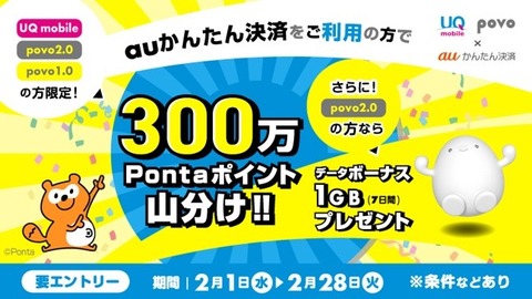 また「au PAY(auかんたん決済)」を利用した買い物も「たぬきの抽選会」などのキャンペーンやauの通信料金プラン「auマネ活バリューリンクプラン」および「auマネ活プラン+」の特典の対象となり、よりお得に「Pontaポイント」が貯まる機会が増加します。詳細は https://kantan.auone.jp/aupay_renewal/ をご確認ください。