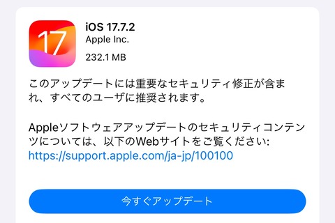 | AppleがiPhoneやiPadなど向けiOS 17.7.2とiPadOS 17.7.2をリリース! |