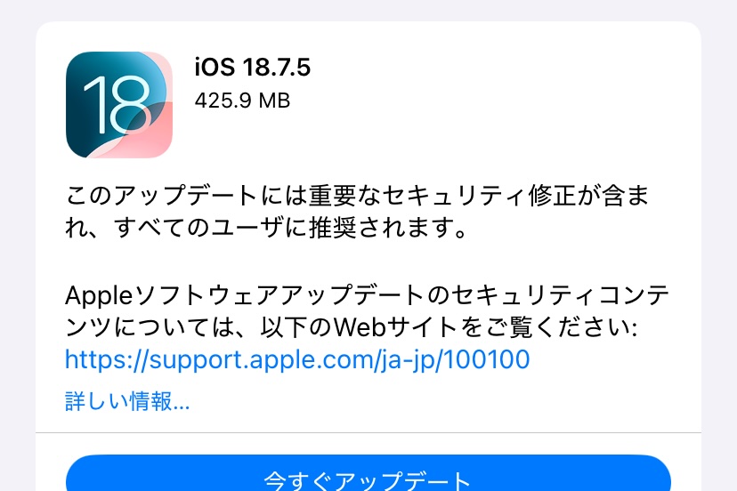 | AppleがiPhoneやiPadなど向けiOS 18.7.5とiPadOS 18.7.5をリリース! |