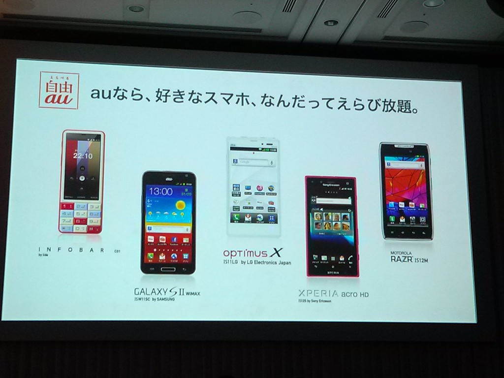 KDDIおよび沖縄セルラーは16日、2012年春に発売予定の新モデル「2012年春モデル」の発表会を都内で開催し、新たに5機種のAndroid搭載スマートフォンをラインナップに加えています。